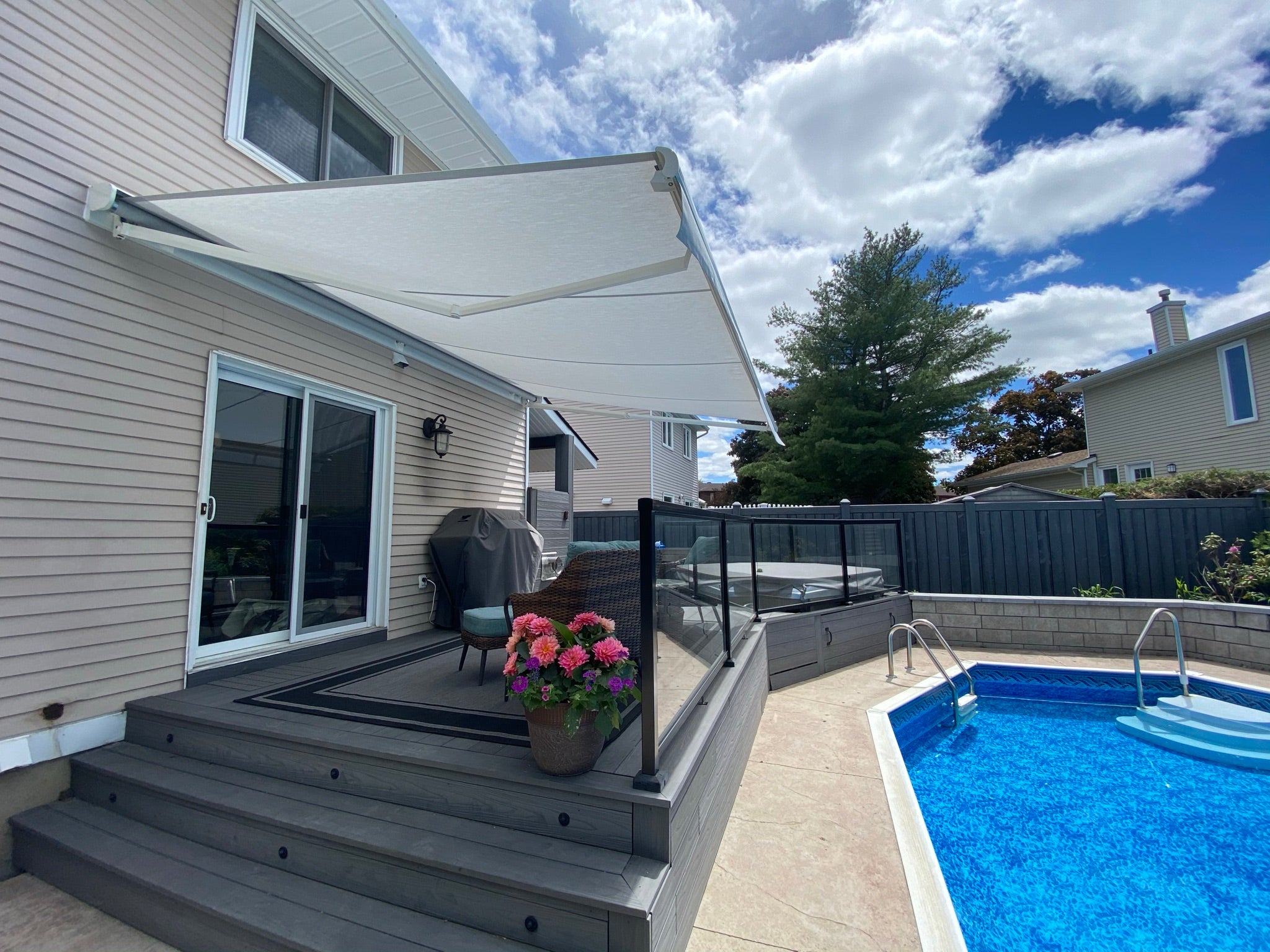 Additional extras such as a cover board, the drop-down Volant-Plus valance, or the variable adjustable incline of the Select-Ombramatic allow this awning to be adapted to many different conditions.