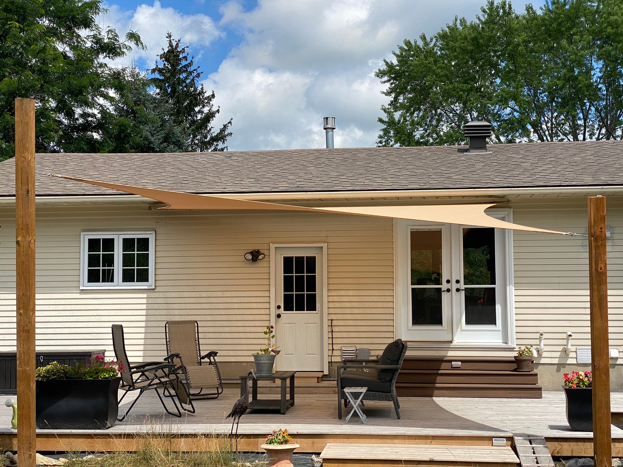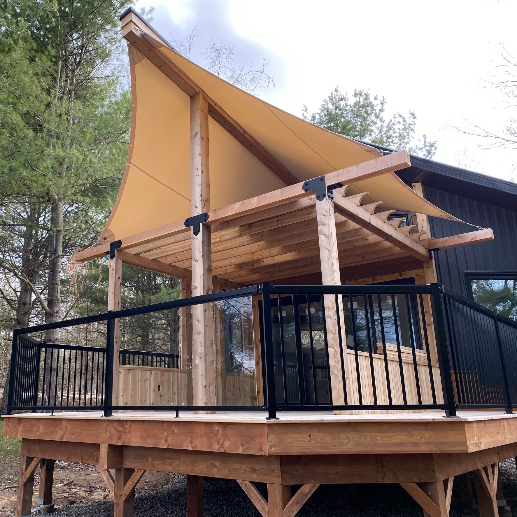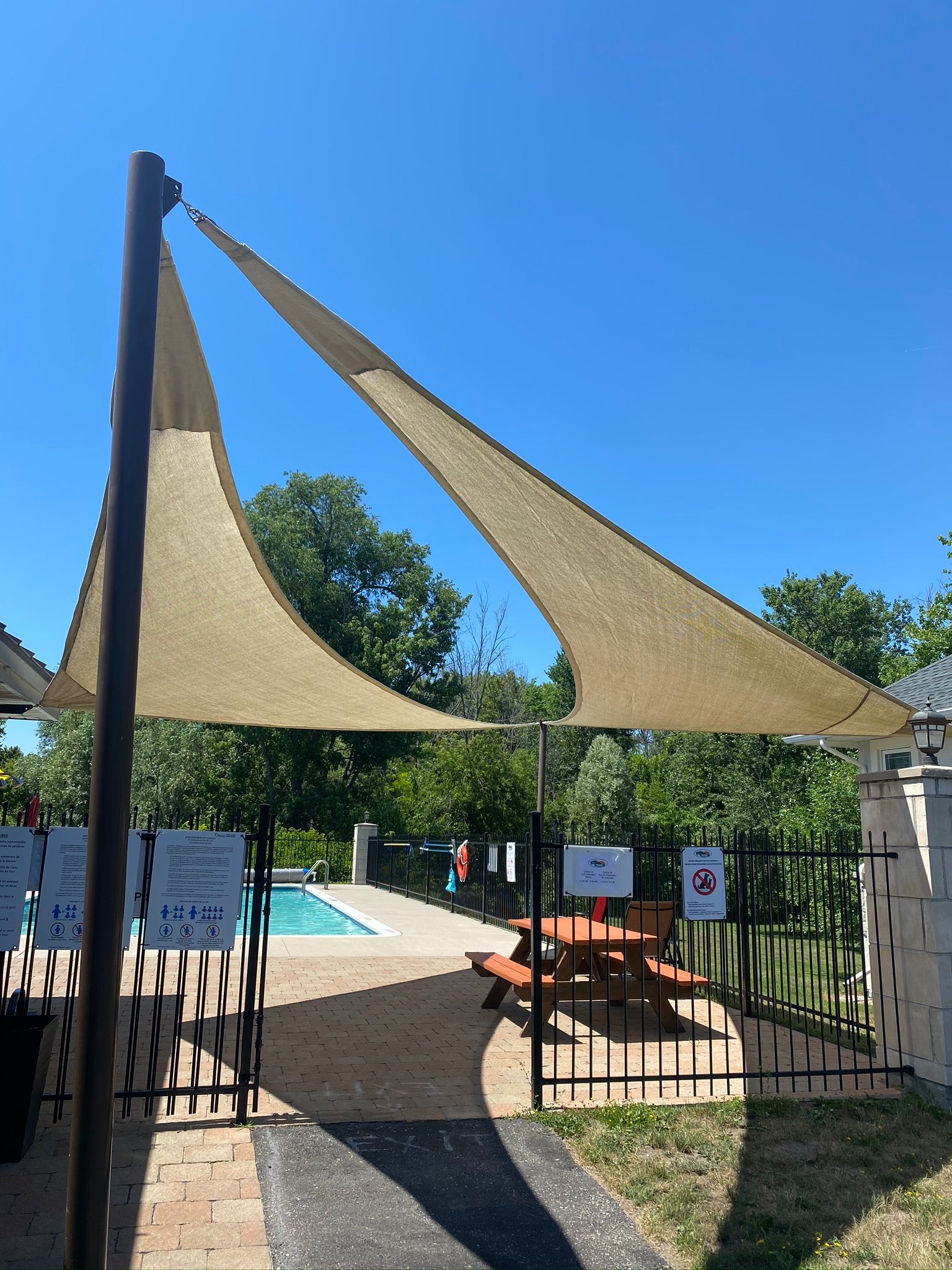 Shade sails are a beautiful contemporary addition to any outdoor living space. High-density polyethylene (HDPE) fabric allows for air to pass through to limit the stresses on anchor points. Shade sails come standard with marine-grade stainless steel hardware.