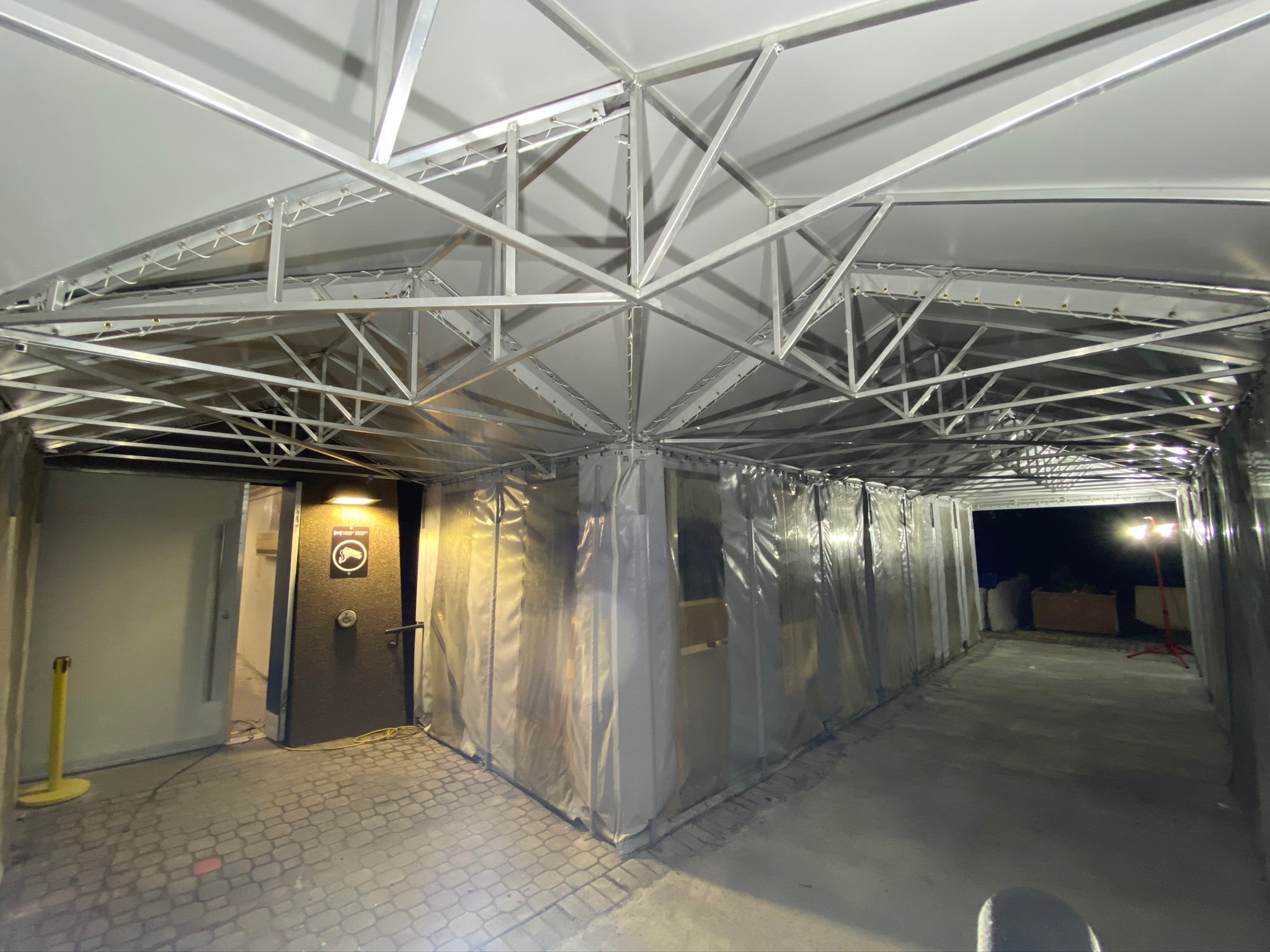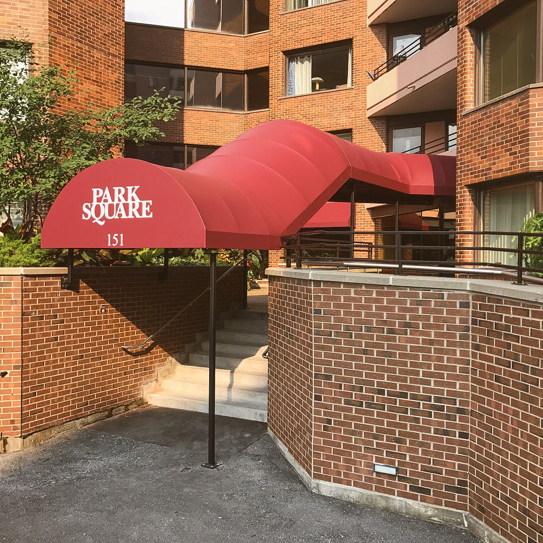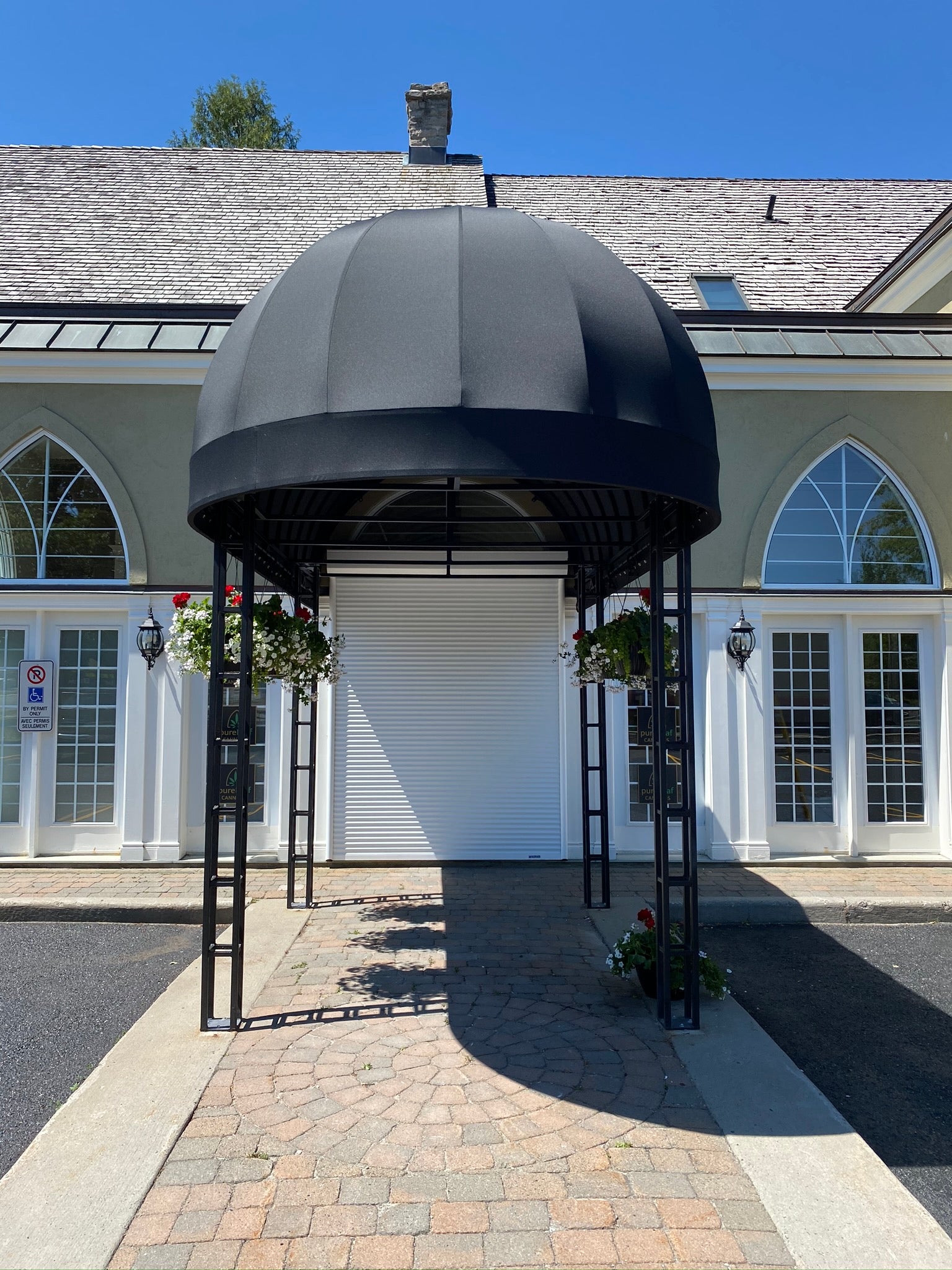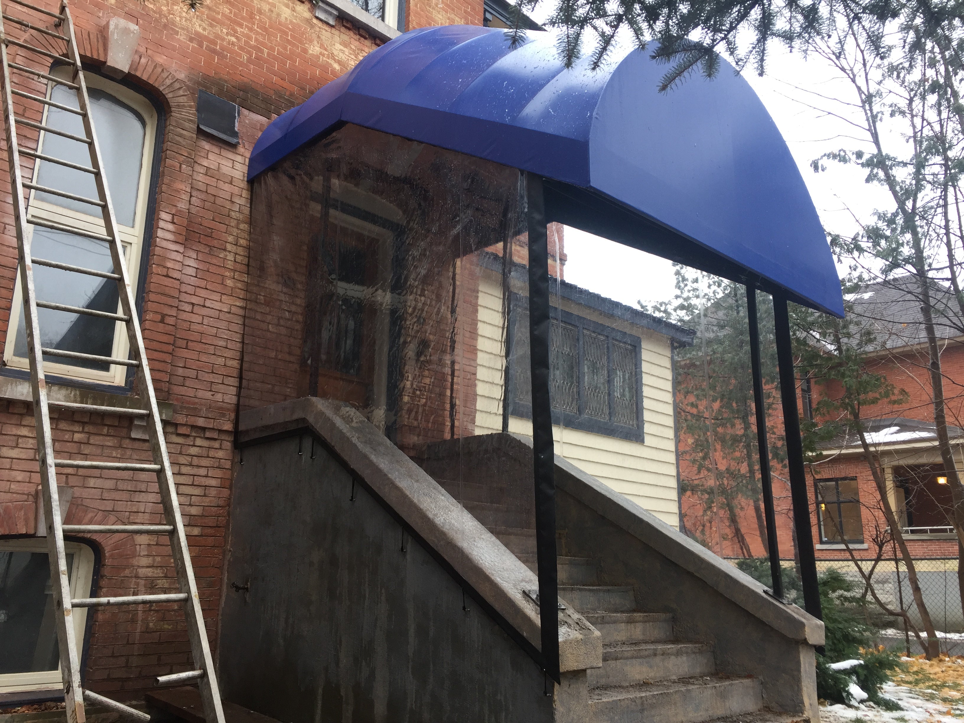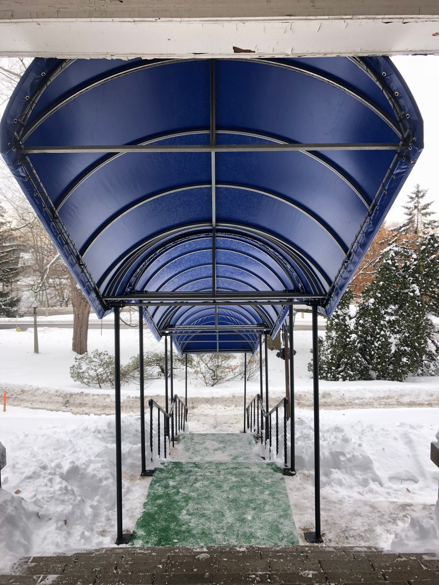 Welded entrance canopies keep your walkway clear of snow during the winter and will also keep you safe from rain in the summer. Welded entrance canopies are fully manufactured in house. Side walls can also be added to these structures to further shield you from the seasonal elements.